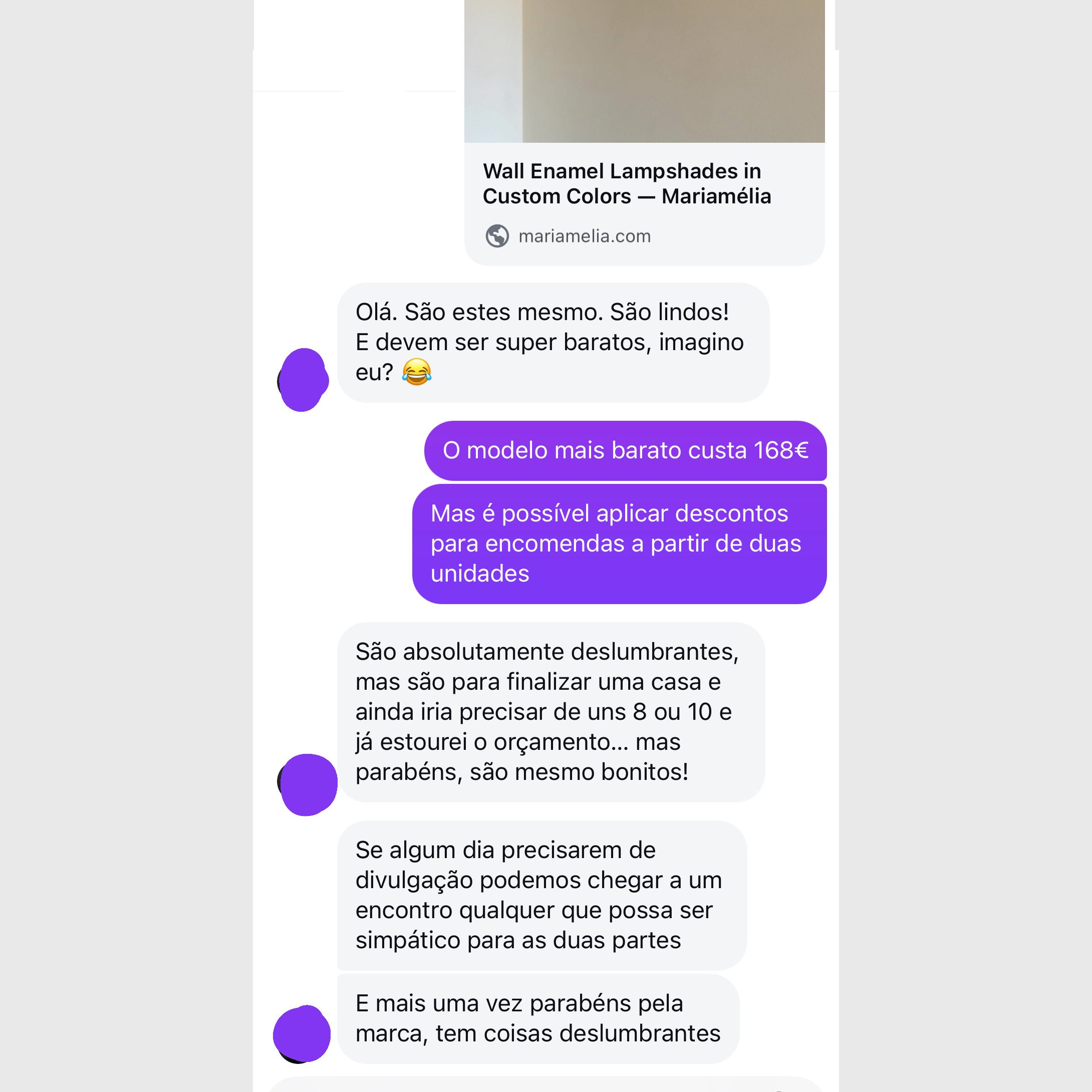 Como haveria publicidade suficiente para pagar mais de 1700 euros em produtos? Com uma campanha publicitária? Acabei por escolher não responder àquilo que me pareceu uma tentativa de “atirar o barro à parede”. Na verdade, respondi com um link para a nossa loja online, fazendo questão de tratar esta figura pública como qualquer outro cliente: oferecendo um desconto na compra de vários artigos, tal como faço com outros clientes, sejam pequenos negócios ou gabinetes de arquitetura.